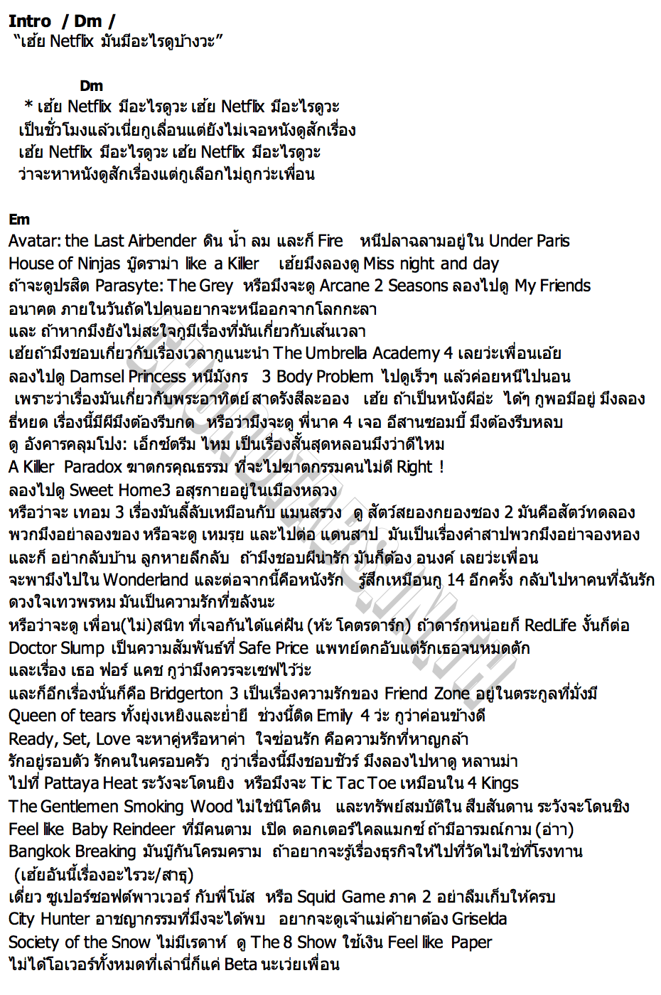 เนื้อเพลง เฮ้ย Netflix มีอะไรดูวะ SARAN