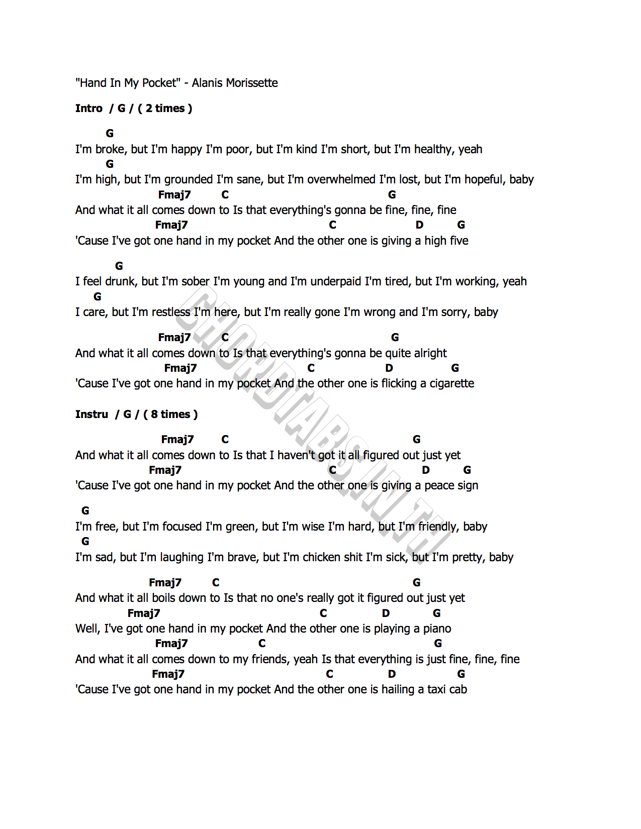 เนื้อเพลง Hand In My Pocket Alanis Morissette