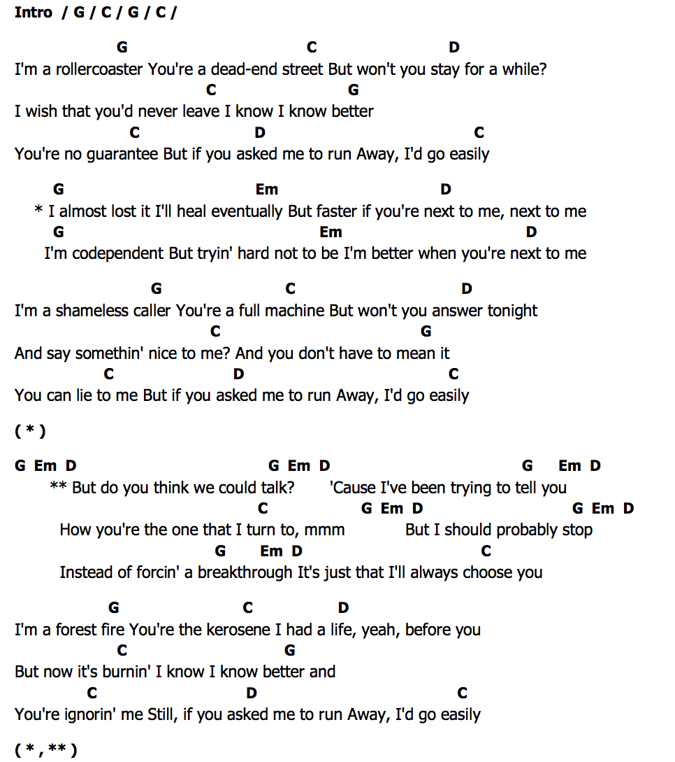 You're no guarantee But if you asked me to run Away, I'd go easily