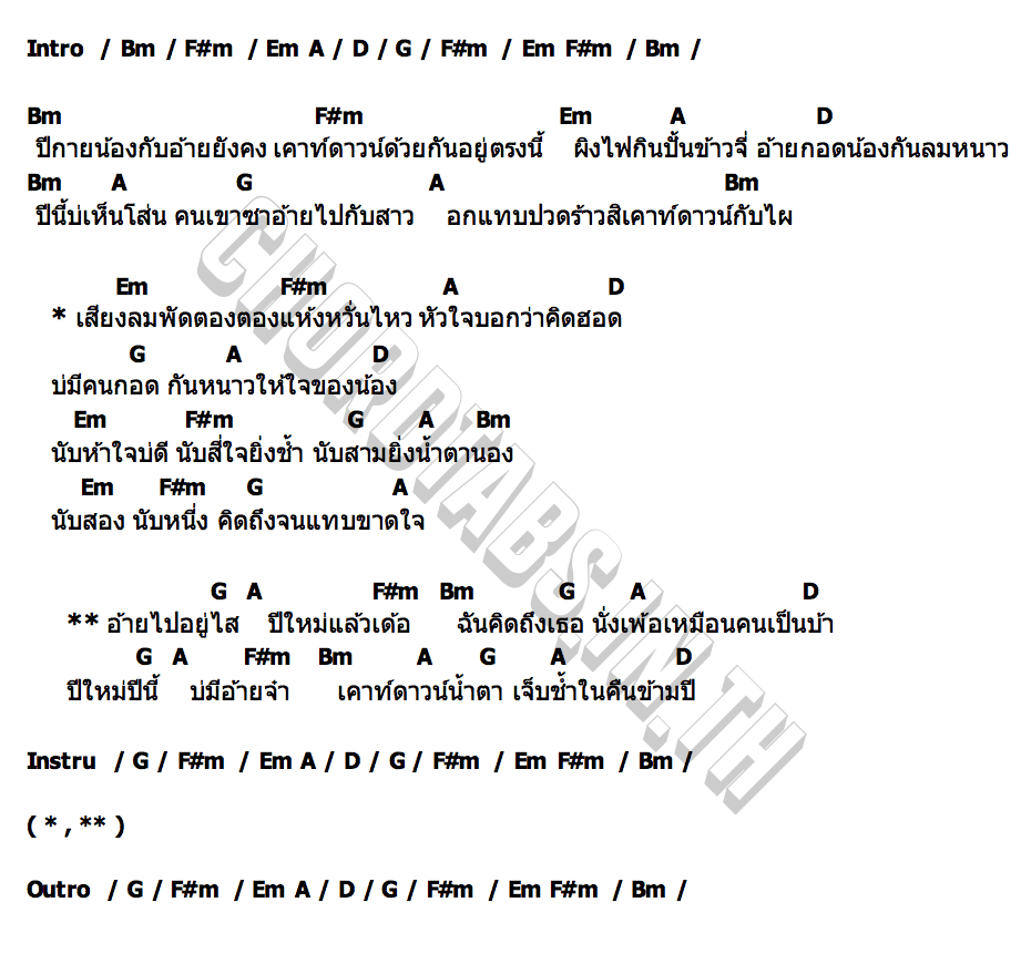 เคาท์ดาวน์น้ำตาคอร์ด | คอร์ด เคาท์ดาวน์น้ำตา รำไพ แสงทอง