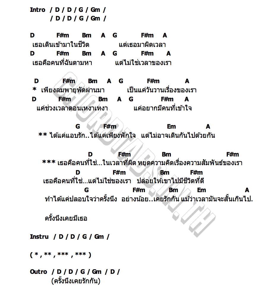 เนื้อเพลง คนที่ใช่ในเวลาที่ผิด BOSS RUNG
