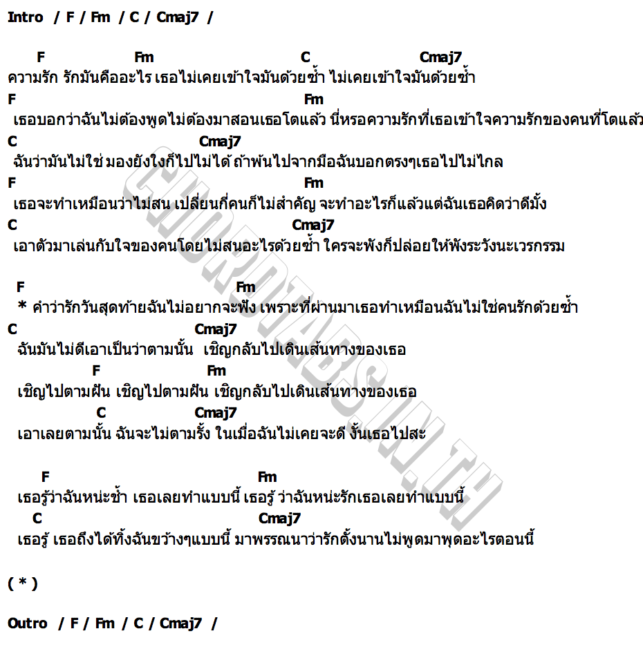 คอร์ดเพลง รักร้ายท้ายสุด