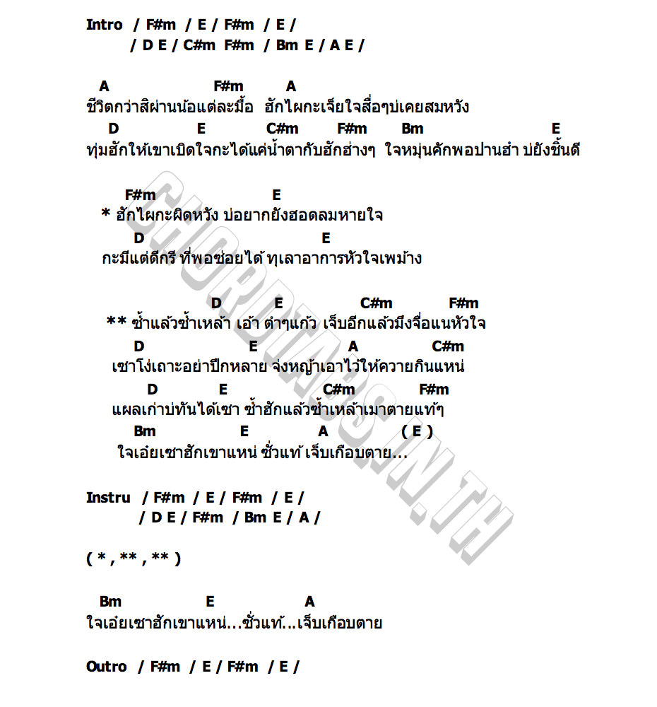 คอร์ด ซ้ำแล้วซ้ำเหล้า มอส กาฬสินธุ์