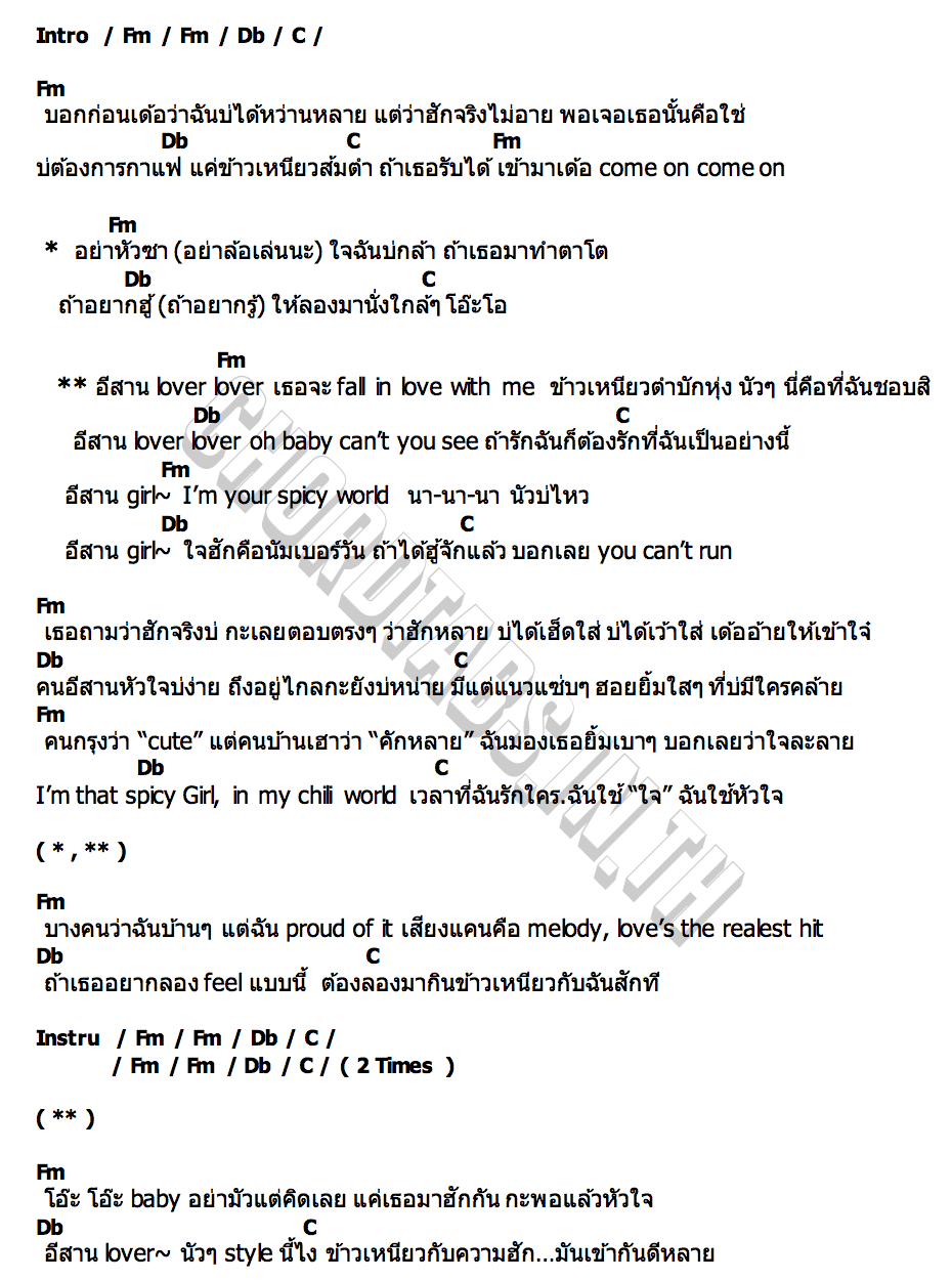 อีสาน Girlคอร์ด | คอร์ด อีสาน Girl ไข่มุก ชนัญญา