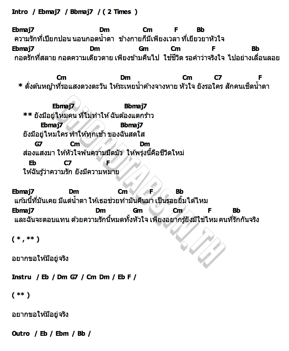 คอร์ดเพลง น้ำค้างบนหญ้า น้ำตาบนแก้ม