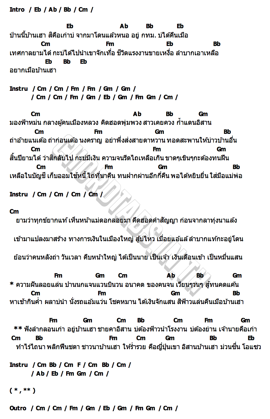 เนื้อเพลง คิดฮอดบ้านเฮา ท๊อป พสุพัจจ์