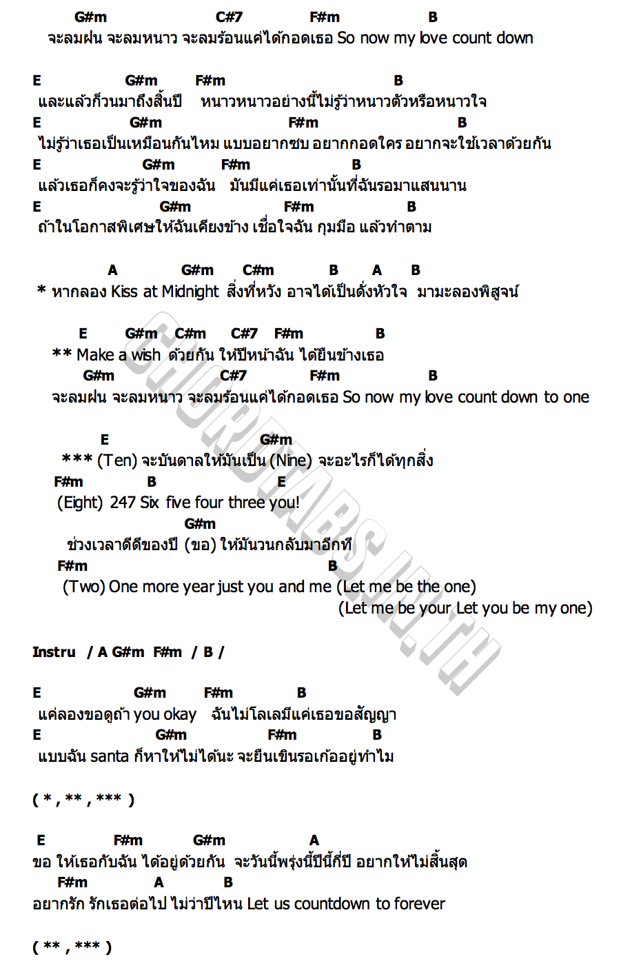 COUNTDOWN TO ONEคอร์ด | คอร์ด COUNTDOWN TO ONE BENZKHAOKHWAN