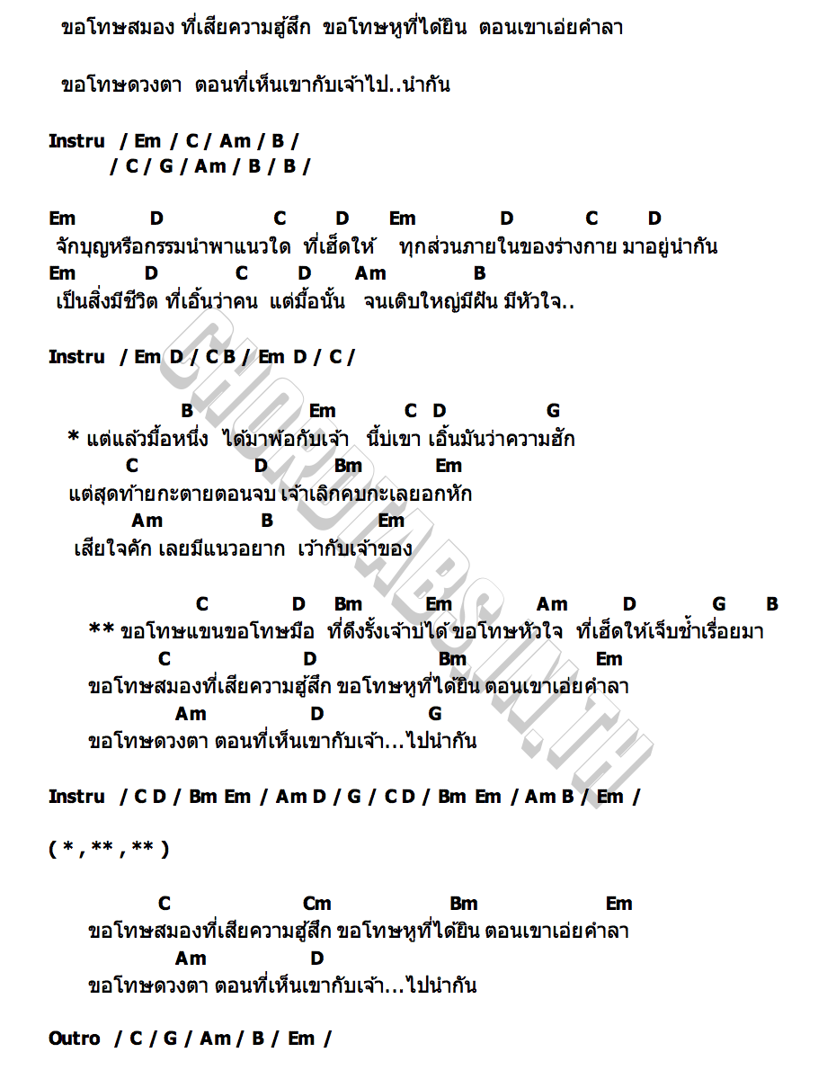 ขอโทษเจ้าของคอร์ด | คอร์ด ขอโทษเจ้าของ จ๊อบ เสกสันต์
