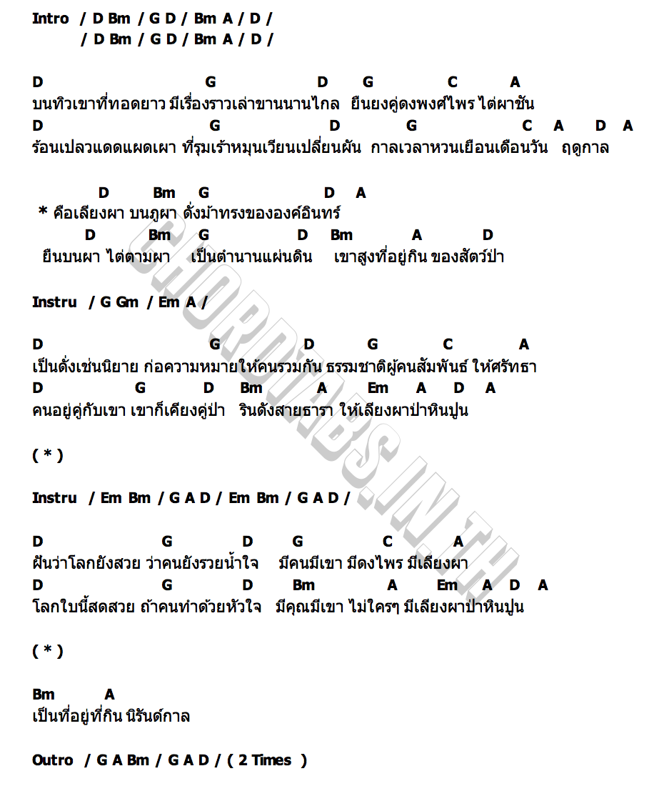 คอร์ดเพลง เลียงผาป่าหินปูน