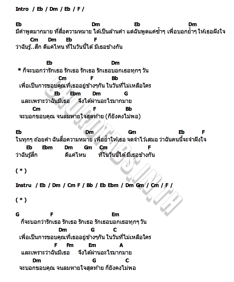 คอร์ดเพลง ขอบคุณ [จนลมหายใจสุดท้าย]