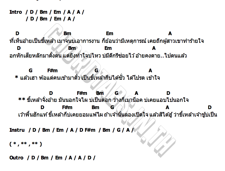 คอร์ดเพลง ขี้เหล้าเจ้าชู้บ่เป็น