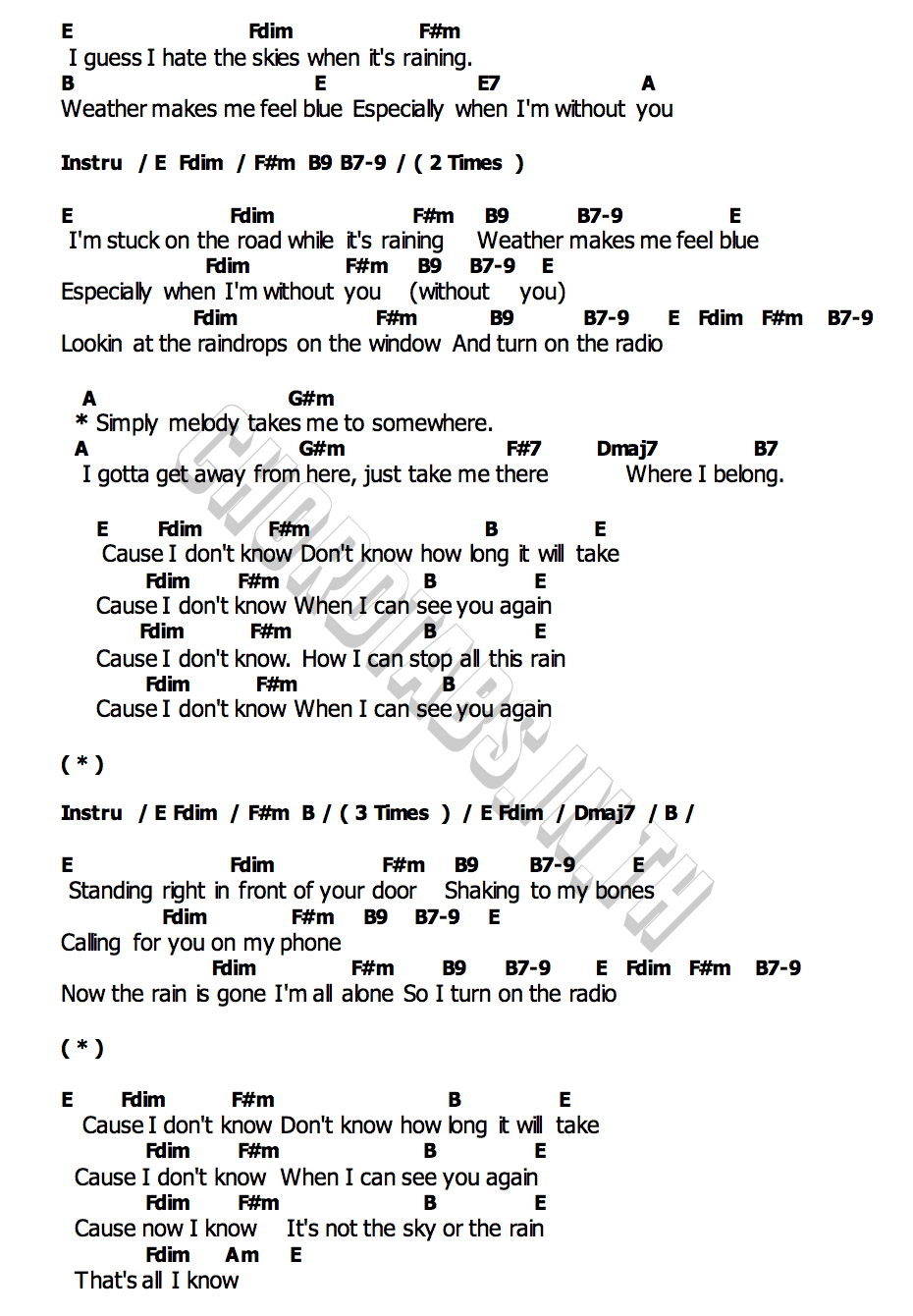 คอร์ดเพลง When It Rains