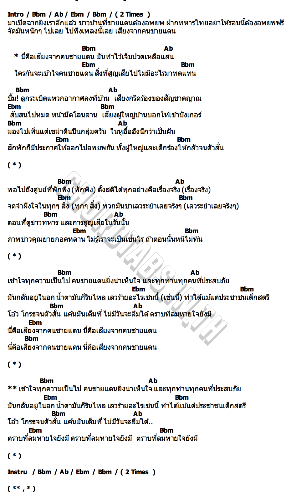 เนื้อเพลง เสียงจากคนชายแดน JAIOONGTONG