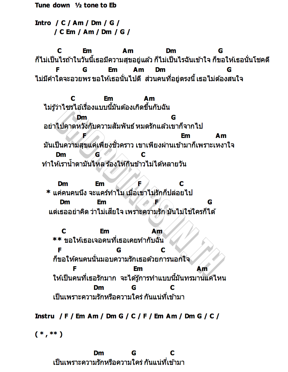 ** ขอให้เธอเจอคนที่เธอเคยทำกับฉัน ก็ขอให้คนคนนั่นมอบความรักเธอด้วยการนอกใจ ให้เป็นคนที่เธอรักมาก