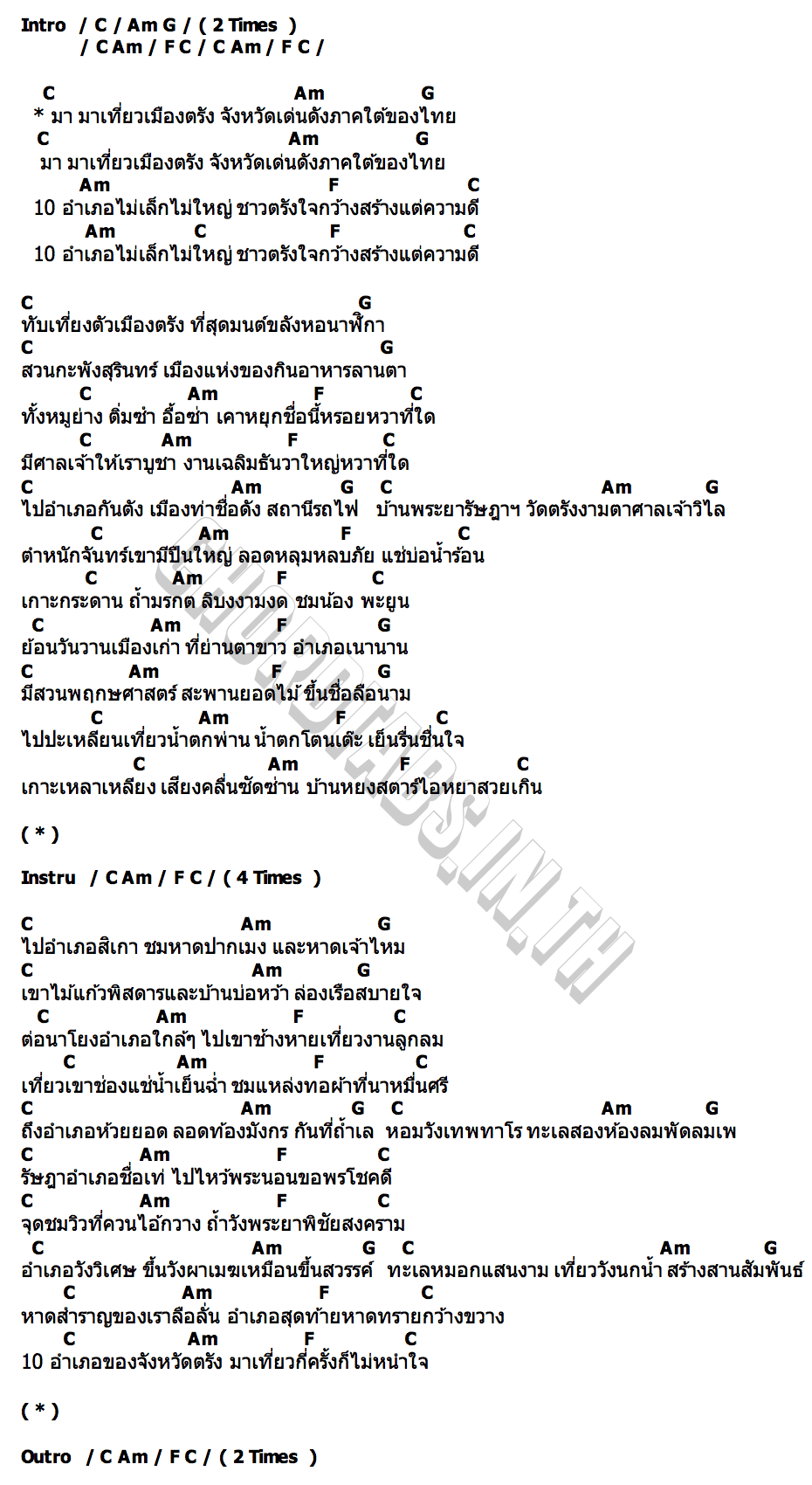 คอร์ดเพลง เที่ยวตรัง 10 อำเภอ