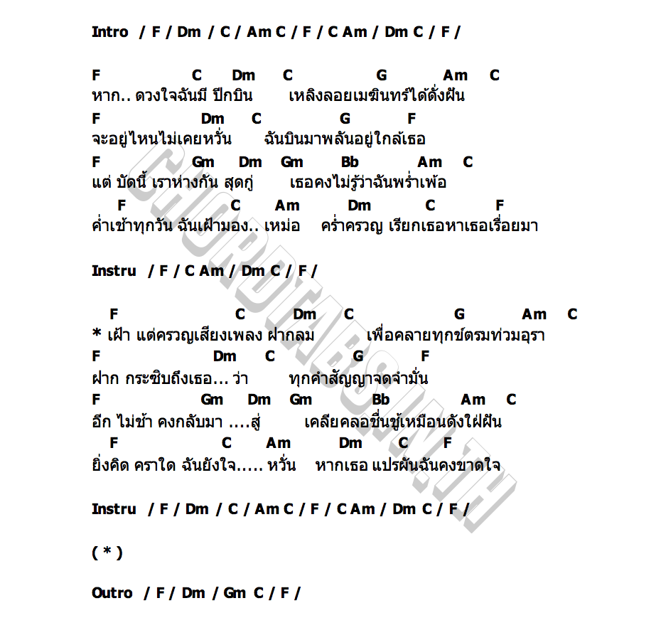 เนื้อเพลง ถ้าหัวใจมีปีกบิน ฟ้า ขวัญนคร