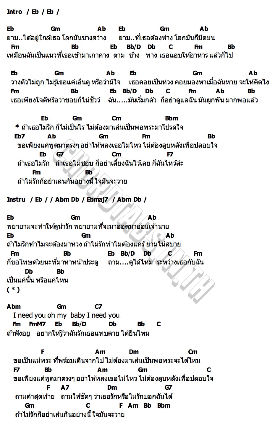 ก็ขอโทษด้วยนะที่มาหาหน้าประตู ขอถามดูได้ไหมระหว่างเธอกับฉันเป็นแค่นั้นหรือแค่ไหน I need you oh my baby I need you ถ้าฟังอยู่อยากให้รู้ว่าฉันรักเธอแทบตาย ได้ยินไหม