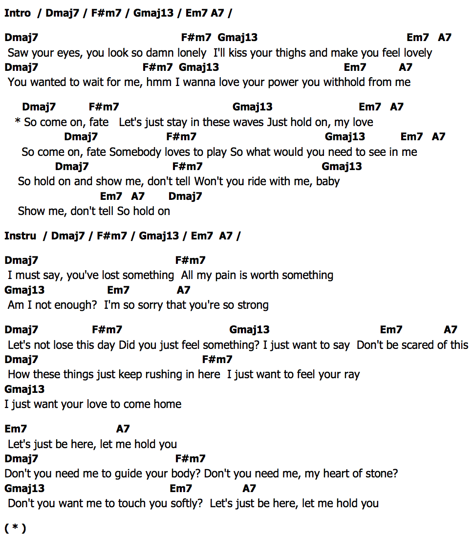 Saw your eyes, you look so damn lonely I'll kiss your thighs and make you feel lovely