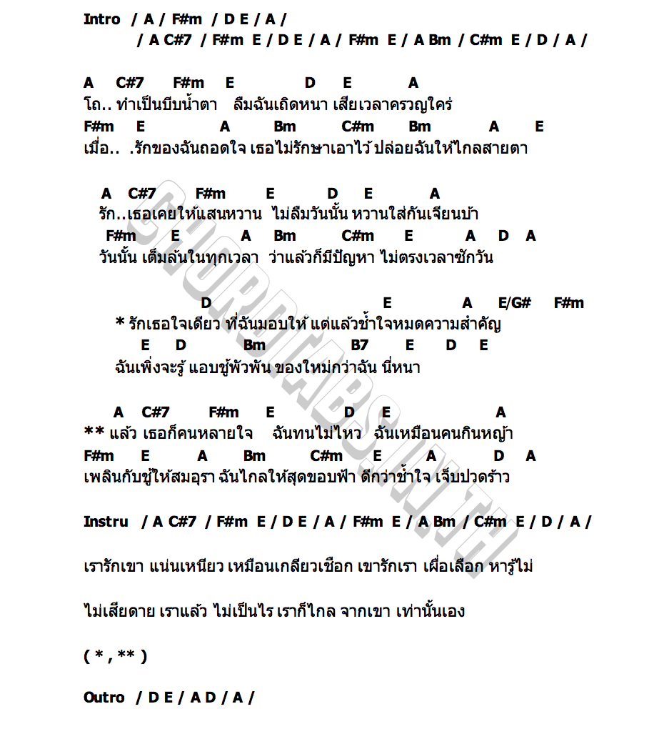 ช้ำใจคอร์ด | คอร์ด ช้ำใจ ดวงตา คงทอง