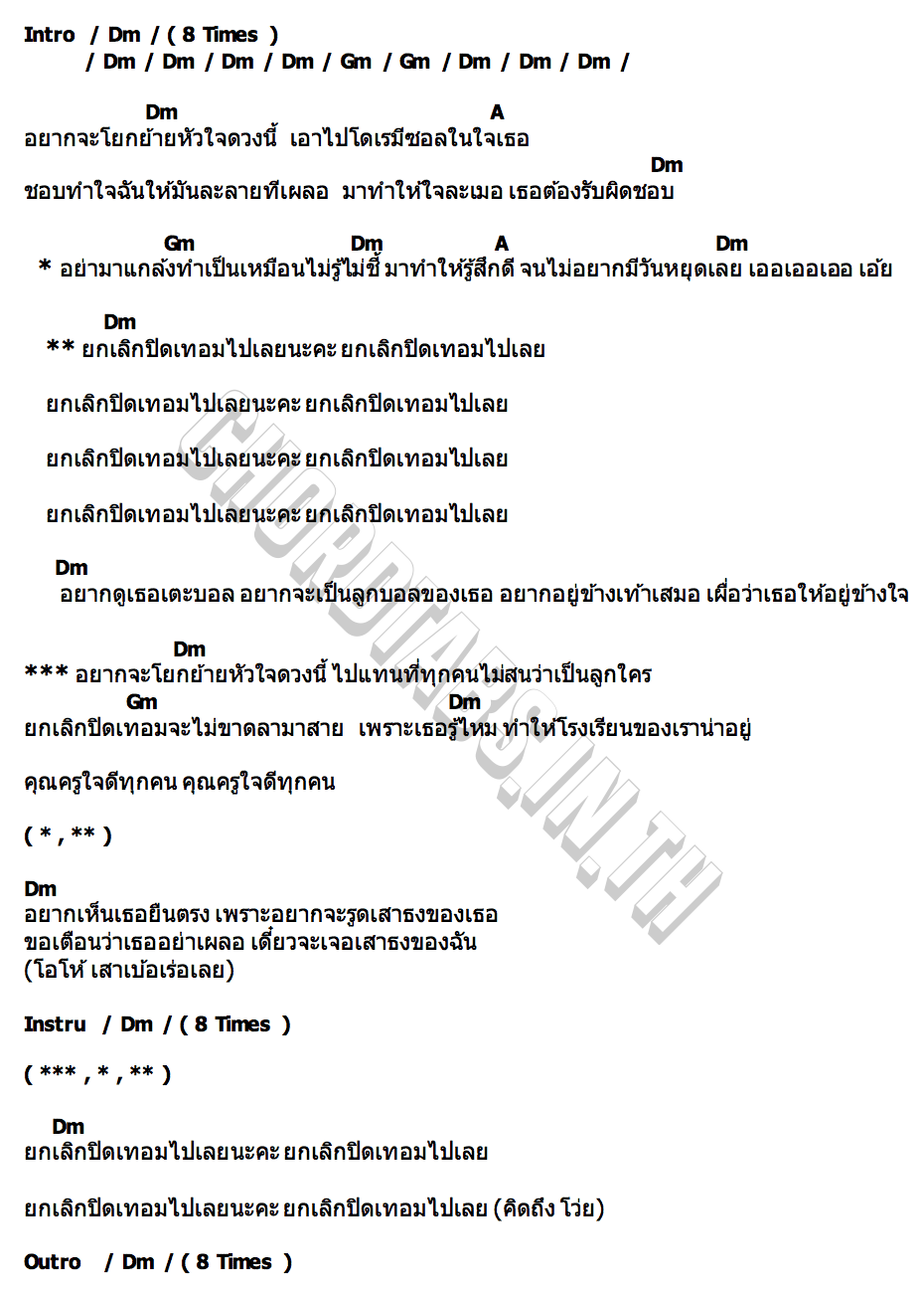 คอร์ดเพลง ยกเลิกปิดเทอม