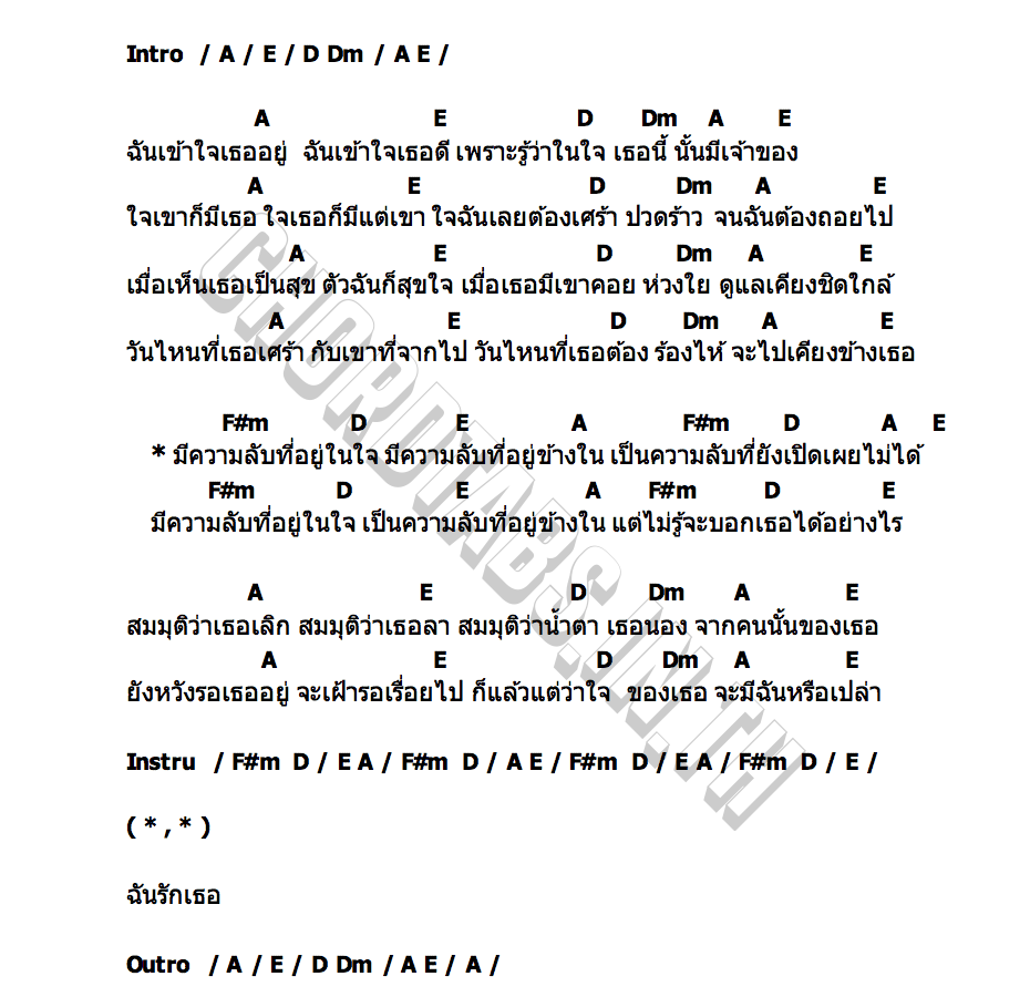 คอร์ดเพลง ความลับในใจ