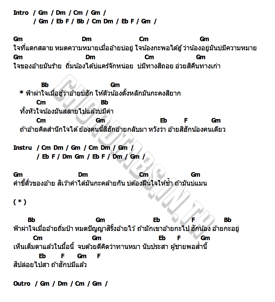 คอร์ดเพลง อ้าย(น้อง)มันคนซั่ว