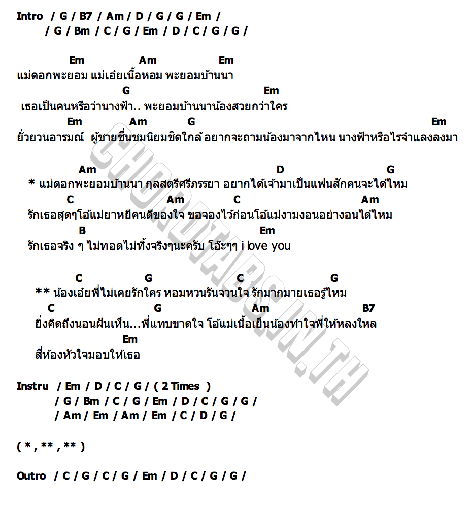 แม่ดอกพะยอมคอร์ด | คอร์ด แม่ดอกพะยอม เมนทอล