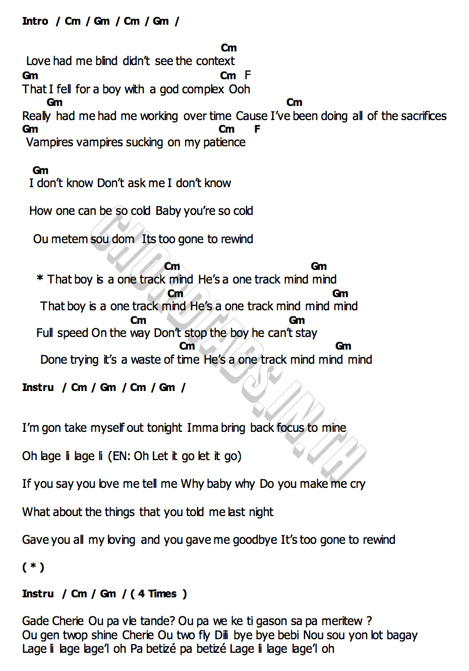 คอร์ดเพลง ONE TRACK MIND