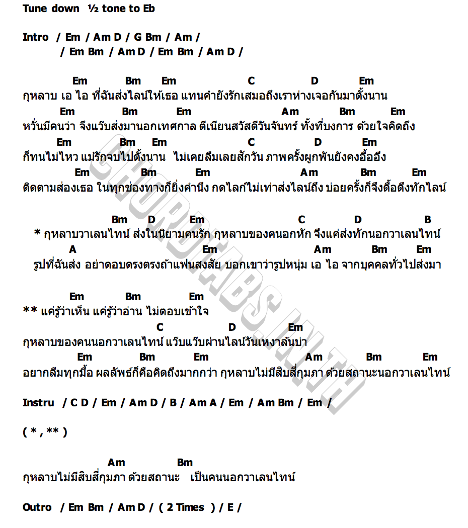 คอร์ดเพลง กุหลาบนอกวาเลนไทน์