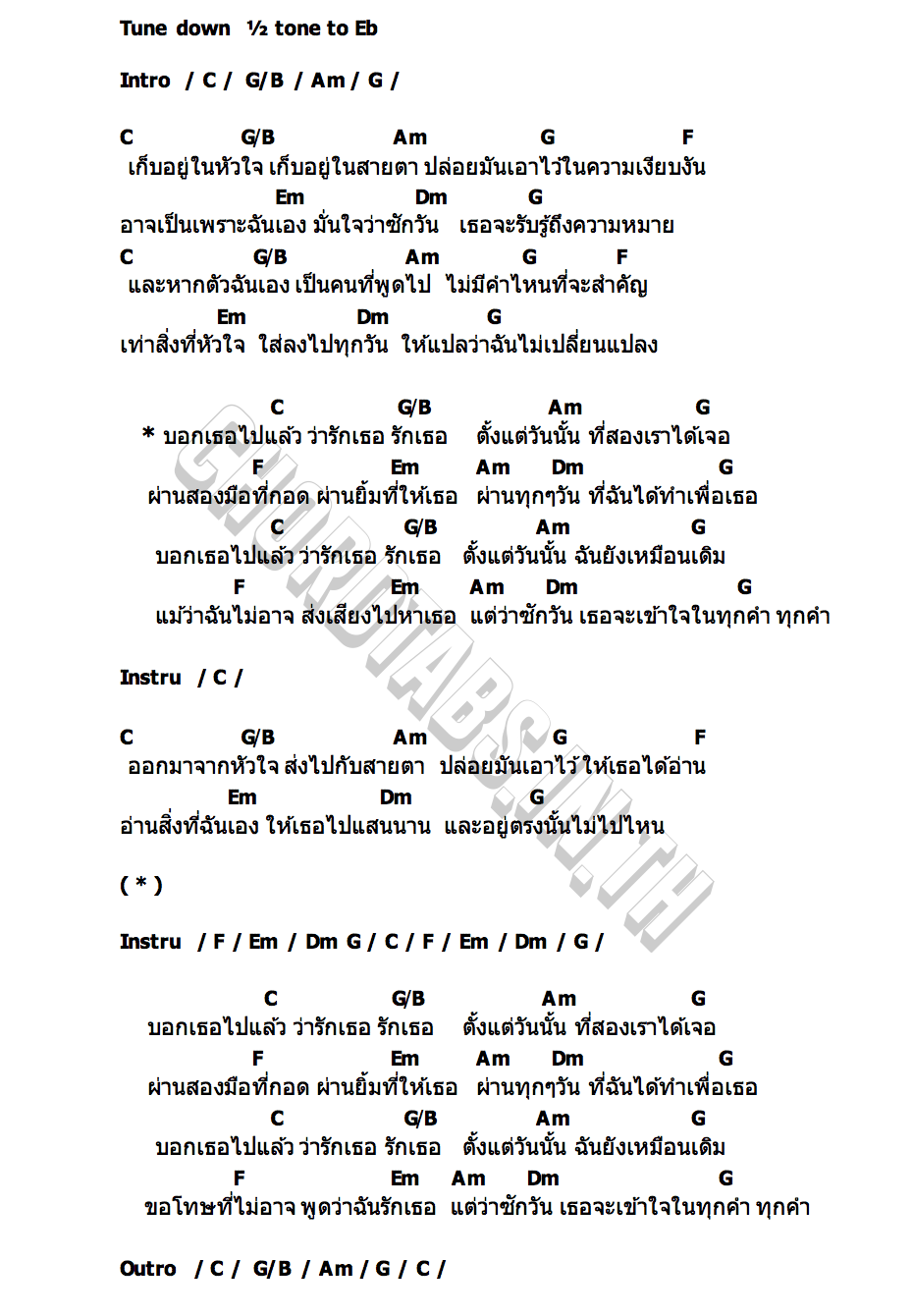 คอร์ดเพลง ภาษารัก