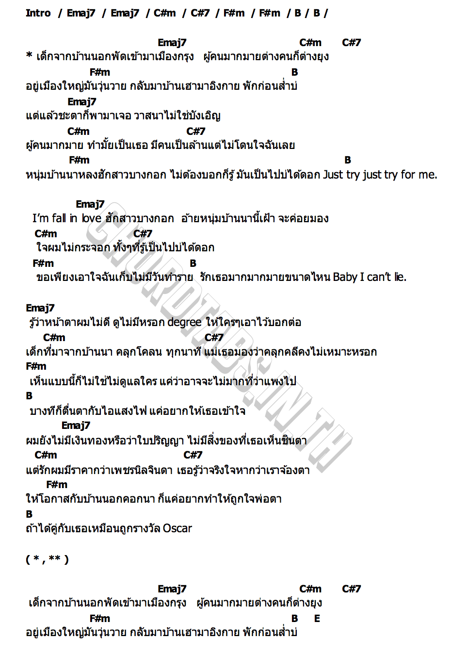 คอร์ดเพลง นอกกรุง