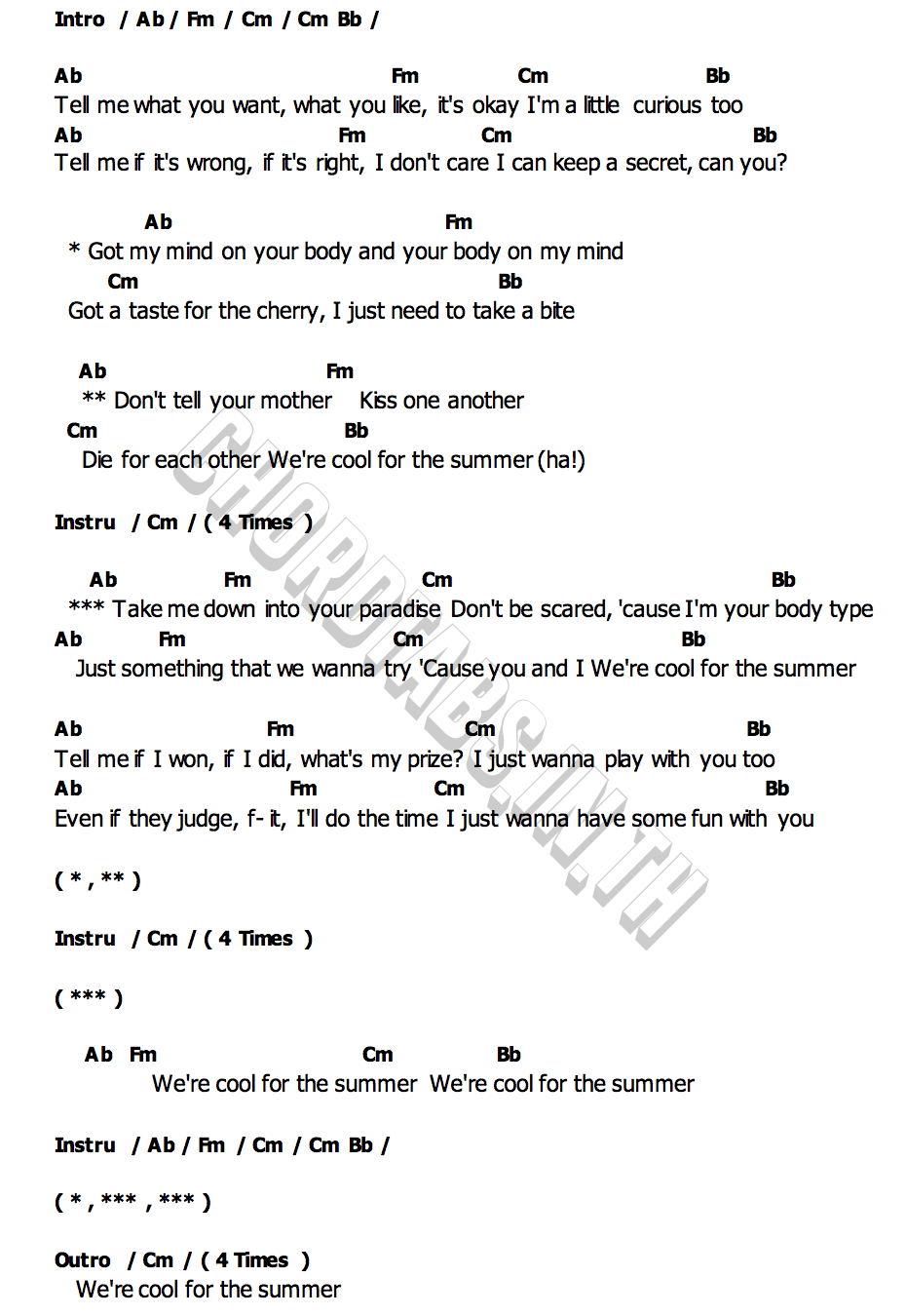เนื้อเพลง Cool for the Summer Demi Lovato