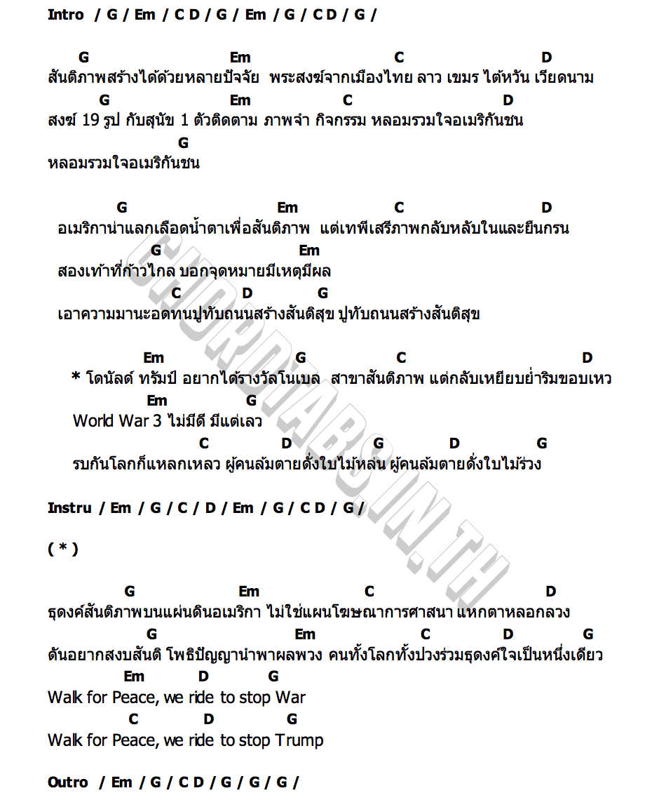 ธุดงค์สันติภาพคอร์ด | คอร์ด ธุดงค์สันติภาพ แอ๊ด คาราบาว