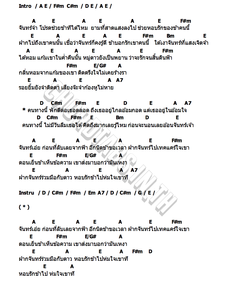 ฝากจันทร์ไปห่มใจคอร์ด | คอร์ด ฝากจันทร์ไปห่มใจ แช่ม แช่มรัมย์