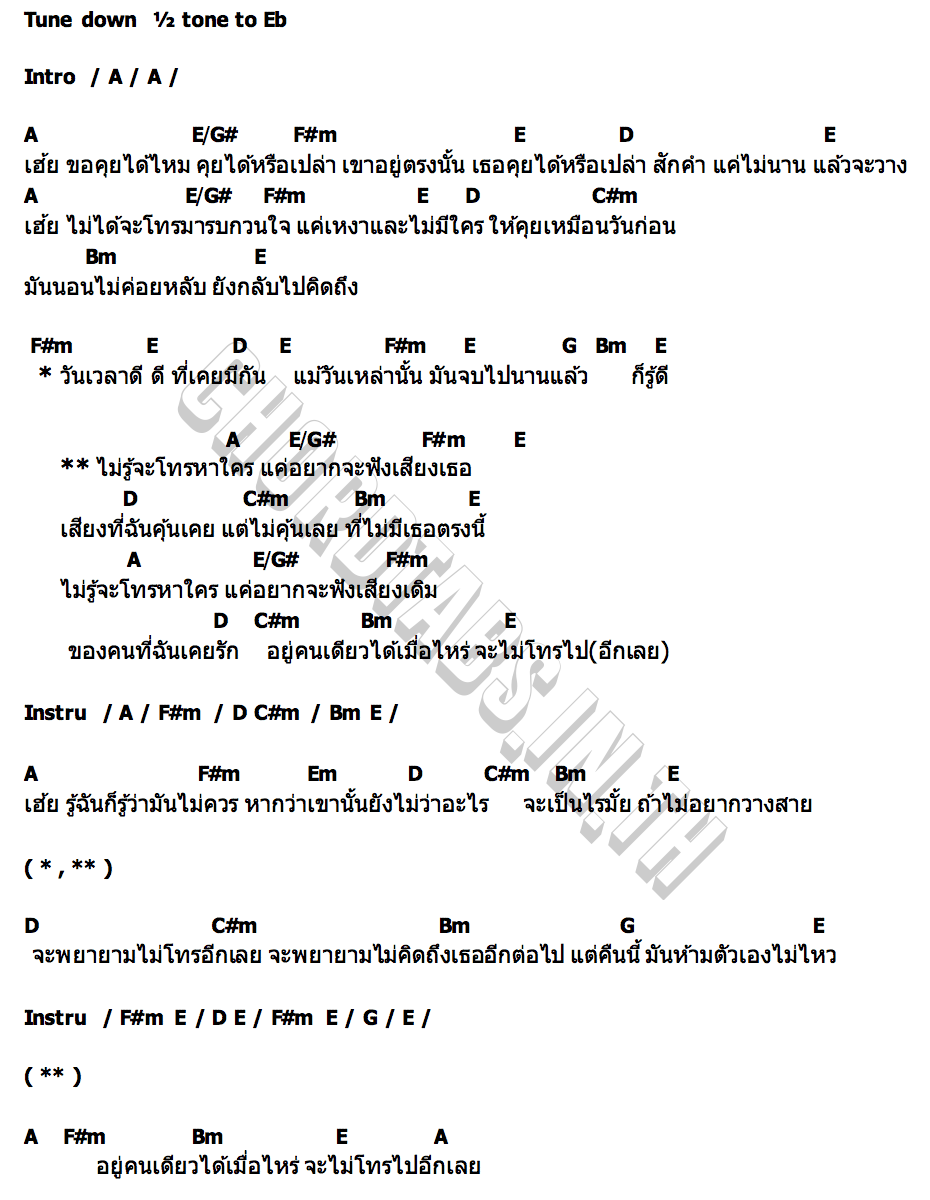 คอร์ดเพลง ไม่รู้จะโทรหาใคร
