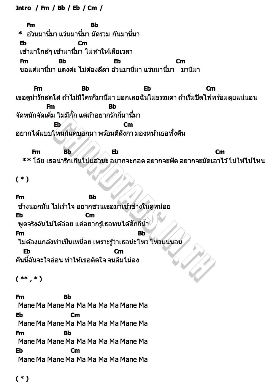 เนื้อเพลง มานี่มา KHAOPOADD