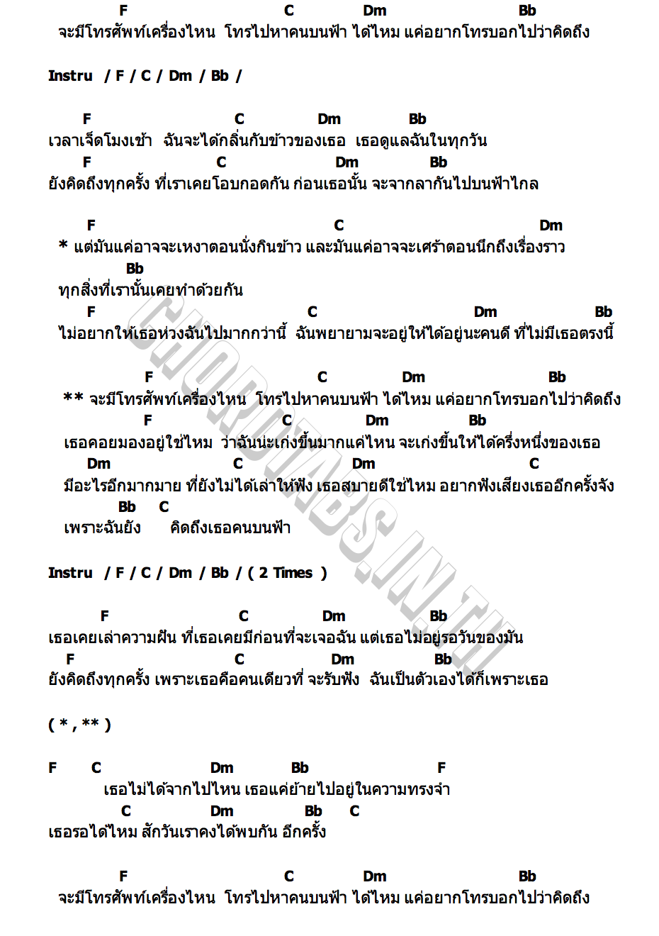 คอร์ดเพลง โทรศัพท์หาคนบนฟ้า