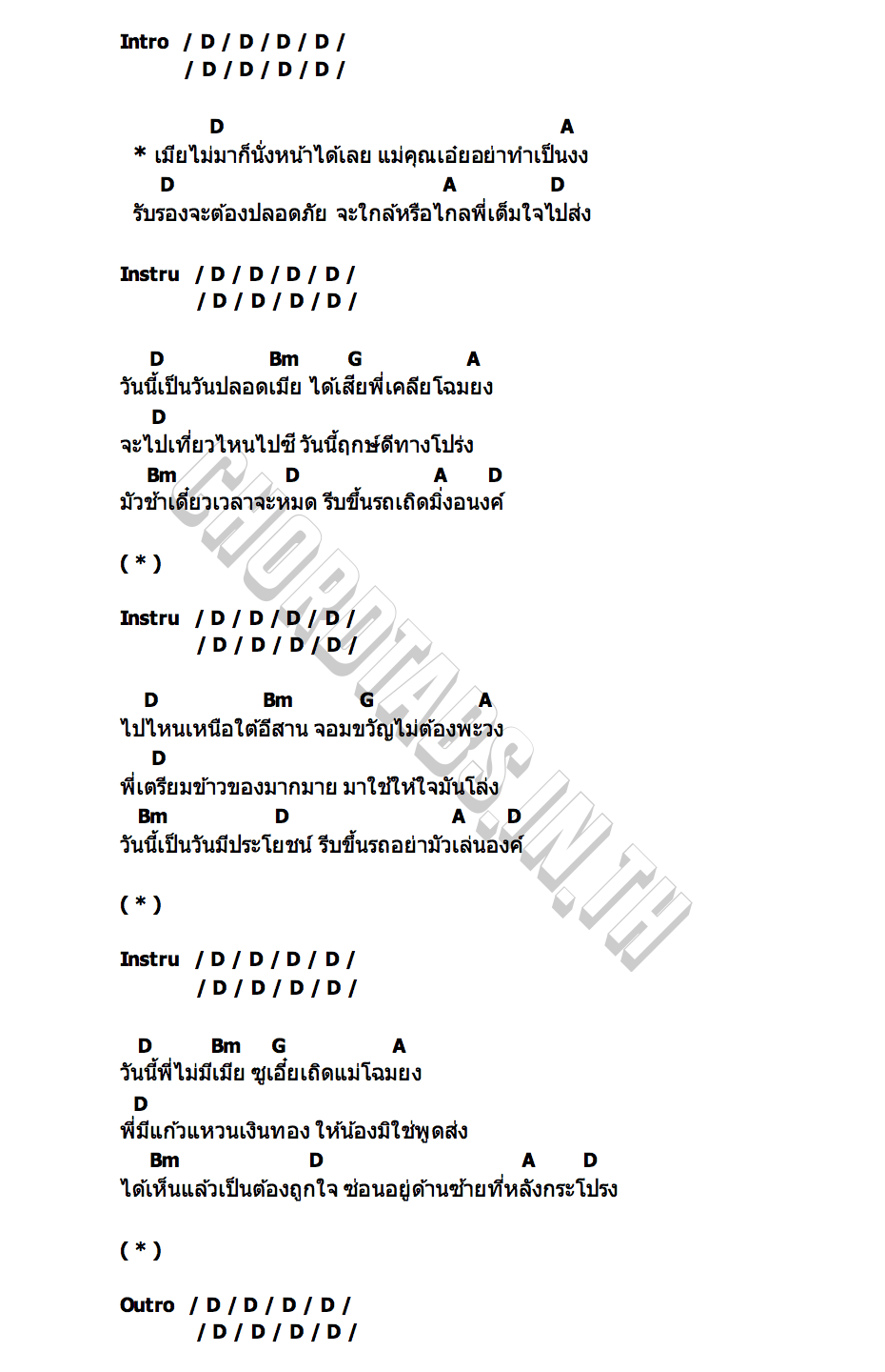 วันปลอดเมียคอร์ด | คอร์ด วันปลอดเมีย แจ๊ค ธนพล