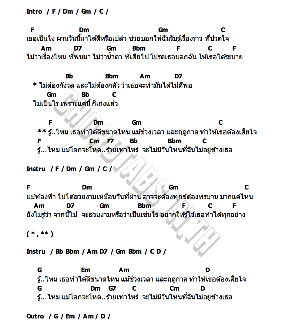 เธอเป็นไงผ่านวันนี้มาได้ดีหรือเปล่า