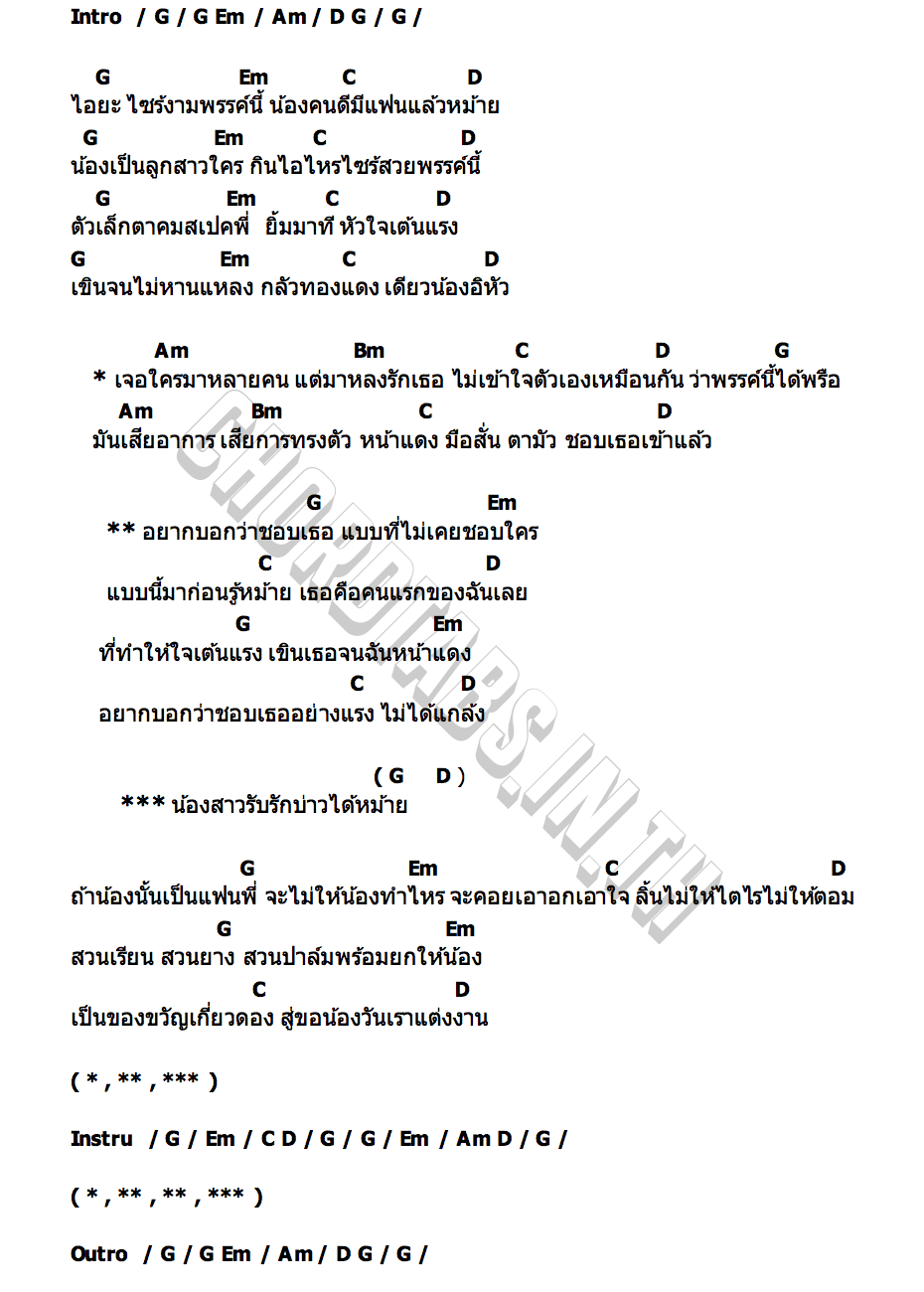 คอร์ดเพลง หวานใจใครที