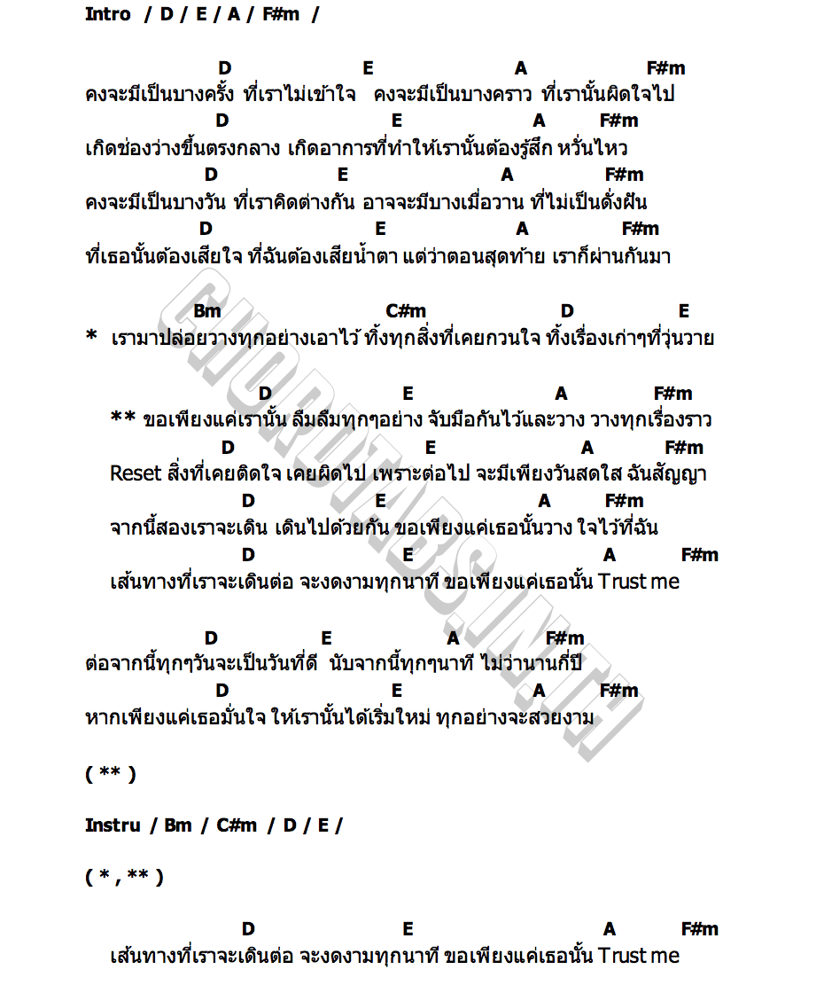 คอร์ดเพลง วางใจ (Trust Me)