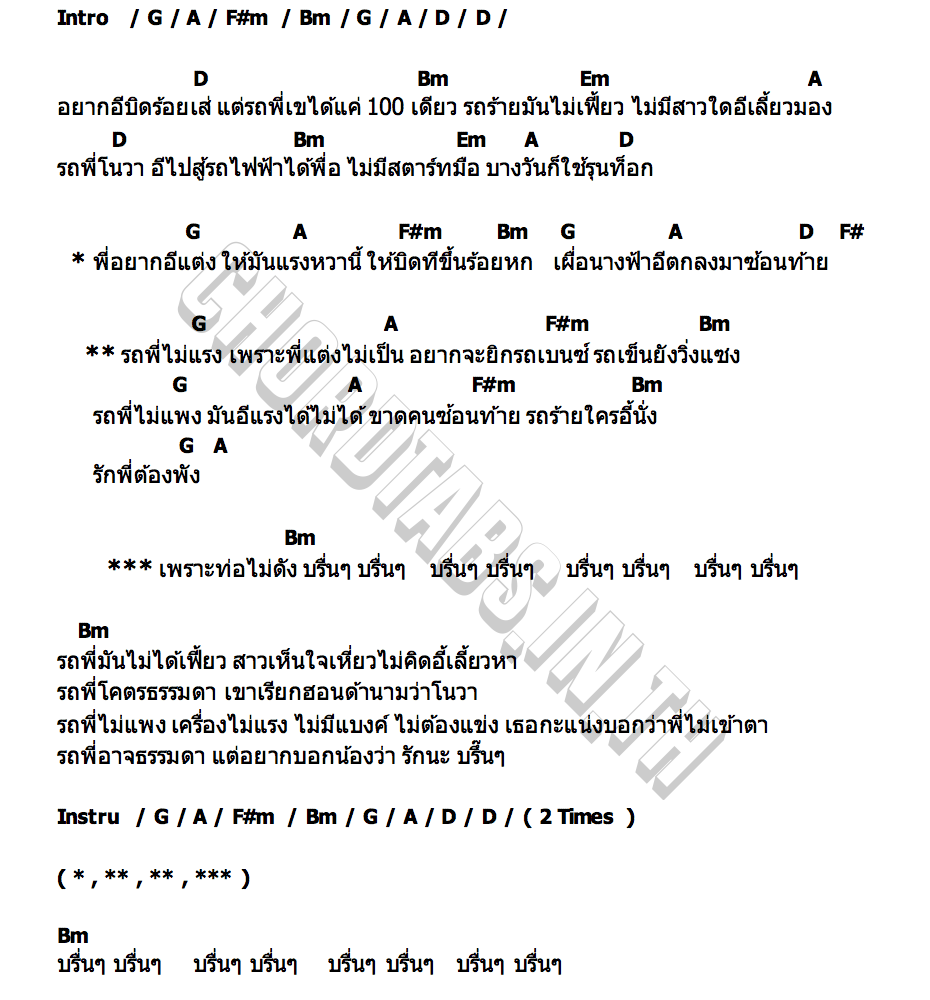 คอร์ดเพลง รถไม่แรง แต่งไม่เป็น