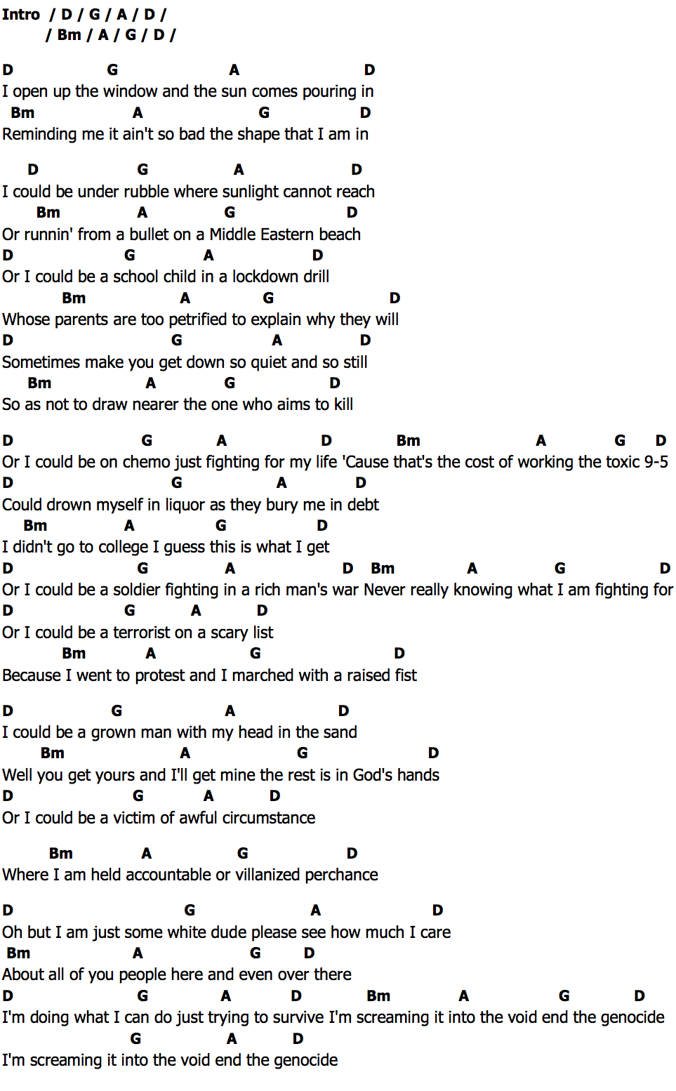 I'm doing what I can do just trying to survive I'm screaming it into the void end the genocide