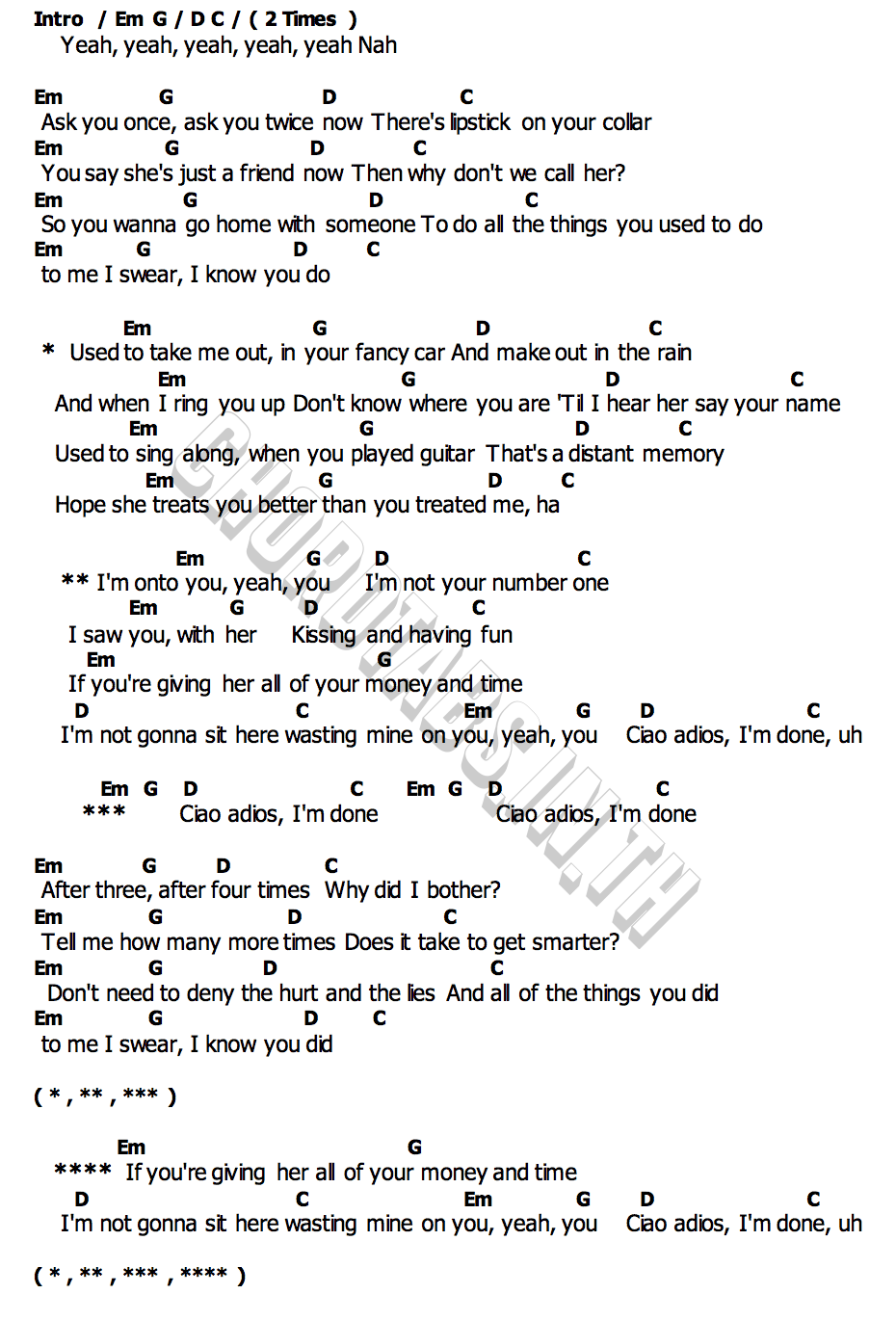 คอร์ด Ciao Adios Anne Marie