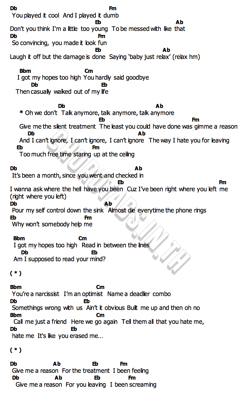 silent treatmentคอร์ด | คอร์ด silent treatment Freya Skye