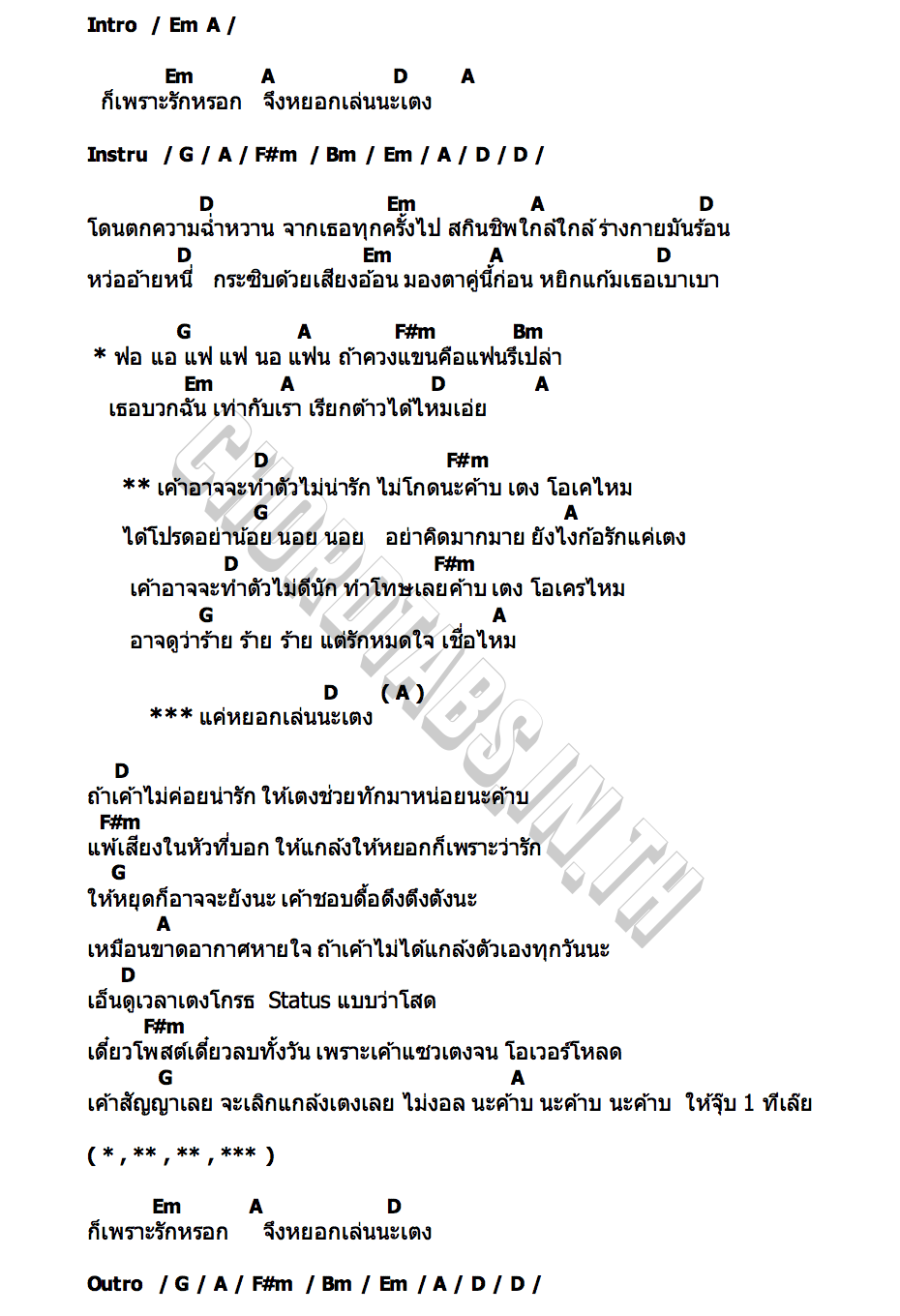 คอร์ดเพลง เขาบ่ได้มักมึง