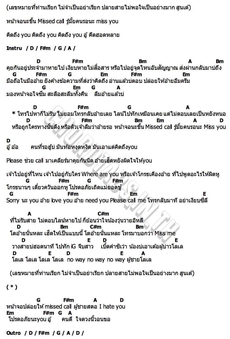 เนื้อเพลง หน้าจอมิสคอล คนรอมิสยู NEW COUNTRY (ติณติณ กีต้าร์ กิ๊ก)