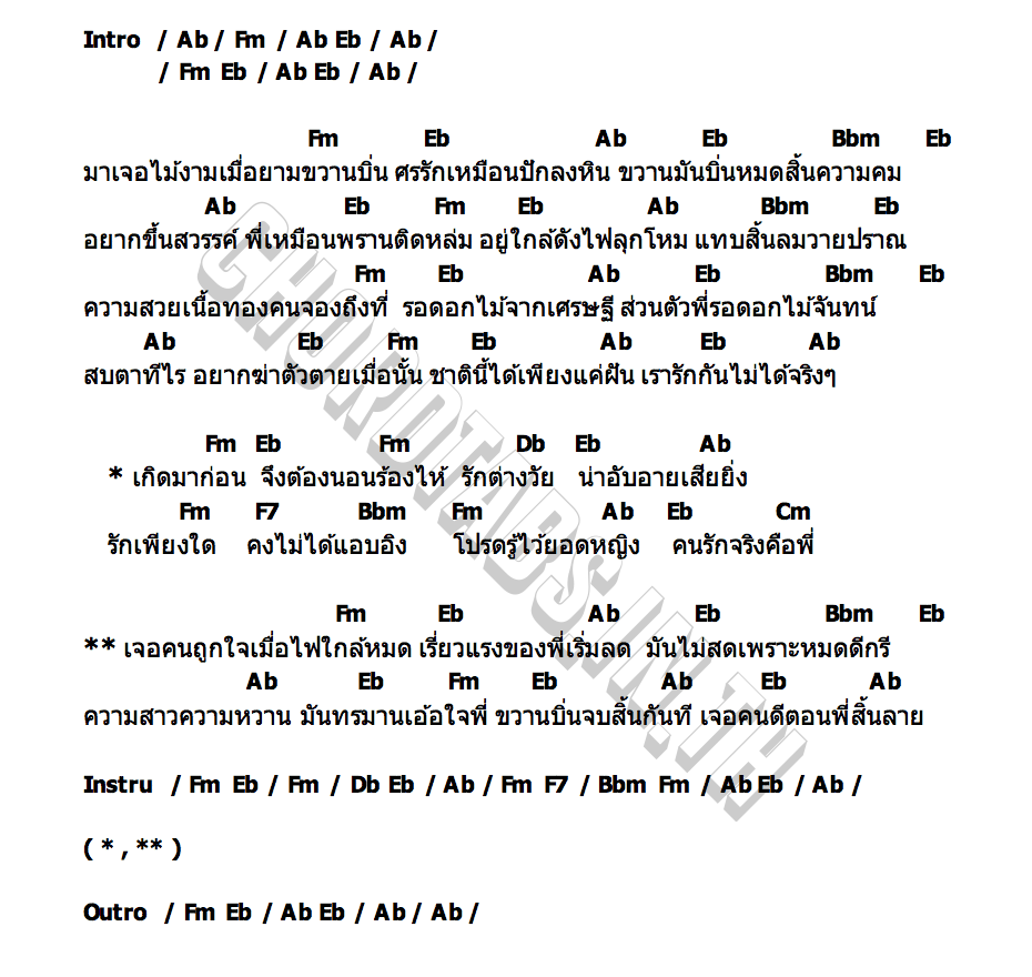 คอร์ดเพลง คอยนวลที่สวนลำไย