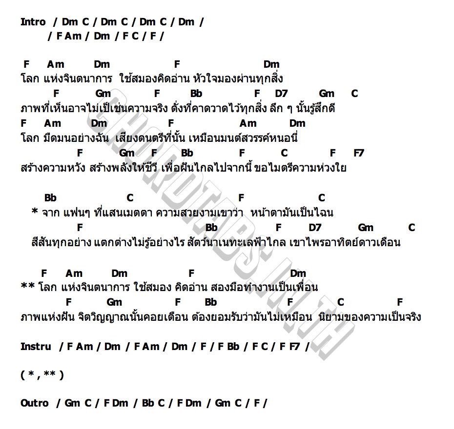โลกแห่งจินตนาการคอร์ด | คอร์ด โลกแห่งจินตนาการ น้องเดียว สุวรรณแว่นทอง