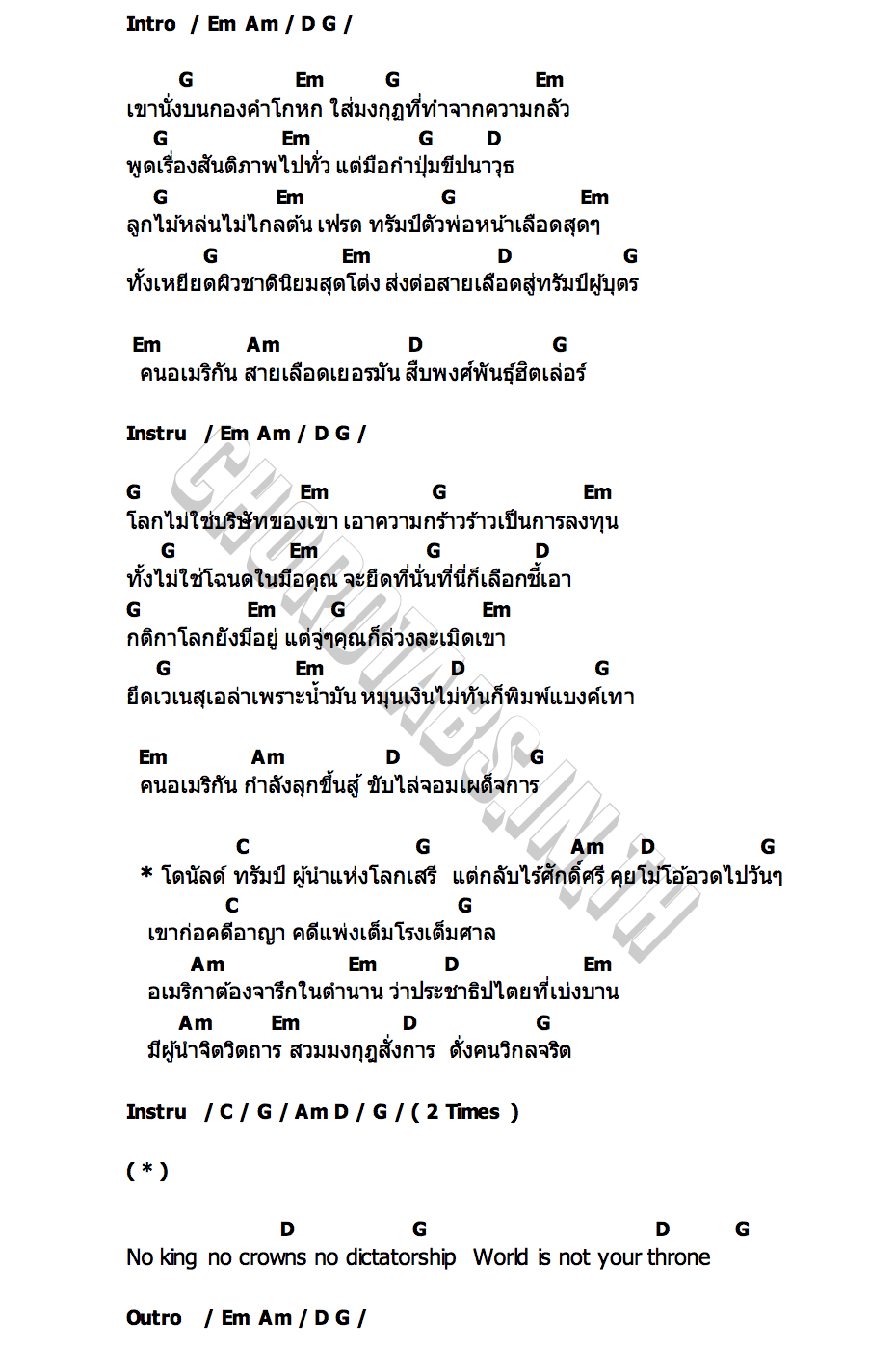 No King Trumpคอร์ด | คอร์ด No King Trump แอ๊ด คาราบาว